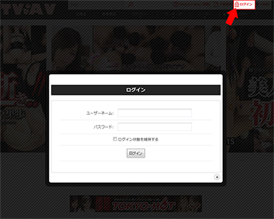 ログイン画面はトップページ上部にある『ログイン』をクリックしますとログイン画面がポップアップ表示されます。