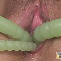 次に満華鏡でチンポを挿入した時の肉壁の具合を確かめて貰います。筆・ディルドウで膣とクリの同時責めからアナルまで責め立てます。バイブで膣とアナルを戦慄かせて最後は指マンで責め立てると膣から白濁汁がタラタラ。
