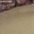 さらにそれだけでは物足りないと1人のクルーが吉井を立たせたままで潮吹き開始。溜まっていたのか大量の潮汁で床までベチャベチャ。