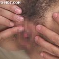 ピンクローターを膣にぶち込まれ悶える愛華にチンポが登場してフェラ開始。頭を抱え込まれてディープスロートが展開し舌上発射。