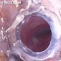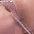 バックスタイルでオマンコに責めを加えられた後クスコで子宮の奥まで覗かれる。ほんのりとピンク色に変色した膣内部は所々に白濁愛液が付着していていやらしい。