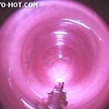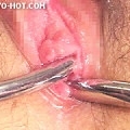 続いて極太バイブを膣穴に挿入され激しく掻き回され喘ぐ。直後オマンコに試験管挿入。白濁した愛液が付着する膣壁を晒された後クスコを挿入され子宮口をまじまじと見られる恥辱プレイが続く。