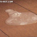 the mouth is collected by the syringe and the it is inserted in the pussy. Semen is poured into bottom of vagina. After the fact, the spectacle where semen flows backward from the pussy