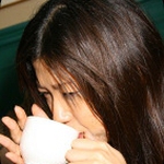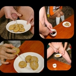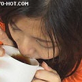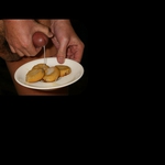 美智子はザーメンで白くなったクッキーとザーメンシロップ入りのコーヒーをしぶしぶ口に運ぶ。口の周りは先程顔射されたザーメンが乾きガビガビ状態。