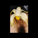その後四つん這いでバナナが膣内にズブリ。オマンコ内に突き刺さったままのバナナを男が皮を剥いてパクリ。続いてバラの花をオマンコ内に生け花され情けない格好を晒される。