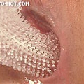 続いて正常位で生チンポがズブリ。騎乗位、バック、正常位。自ら腰を激しく振りながら悶絶。そして屈曲位で生中出し。膣口から大量の愛液と共にザーメンが逆流する。イメージシーンを挟みセーターにスカートという私服姿の梨恵は耳栓をされさらに目隠しもされる。目と耳からの刺激を遮断し身体への刺激に神経を集中させるためだ。梨恵は服を脱がされ立ちポーズで振動する頭の部分にバイブが装着された東熱オリジナルの電動アンマ器責め。バイブ部分が膣内に押し込まれ振動開始。