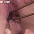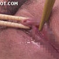 摘まれたりストローでクリトリスを吸引されたりする。責められる度絶叫。さらにボールギャグを咬まされオマンコをローターで刺激される。