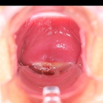 白濁した愛液がアナルにまで垂れる。続いて試験管を深々と挿入され膣内チェック。膣道には大量の愛液が噴出。