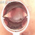 名器の期待が高まる。続いて開脚ポーズで膣内を指で掻き回され絶叫。大量の愛液が迸る。直後クスコがズブリ。膣奥のヒダまでも丸見えにされる。