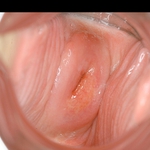 妊娠のチェックだ。左右の膣壁がぴったりと密着して子宮口がはっきりと見えない。チンポで膣壁を掻き分けて進むと気持ち良さそうだ。直後バイブがズブリ。
