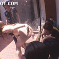 東熱恒例新規会員勧誘キャンペーンが大々的に行われた。今回の生贄は黒いビキニ姿の洋子。入会を検討中の男達に視カンされながら洋子は鬼畜軍団のひとりに身体を弄くられまくる。そしてビキニのパンティを脱がされ開脚ポーズでクリをバイブで刺激される。直後電マを強く押し当てられ悶絶。続いてディルドに自らマンコを押し付け立ちバックでズブリ。腰を振りまくって感じる。直後開脚ポーズでマンコにローターをしつこく押し付けられ喘ぎまくり。イッてしまう。入会検討中の男達は洋子の痴態にすっかり興奮。全員即入会を決定。